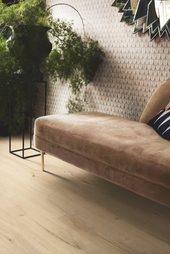 Dąb irlandzki naturalny pogłębia połączenie z naturą, wprowadzając kojące neutralne odcienie oraz uspokajającą paletę i teksturowane wzory. Ta podłoga Rigid Click jest w 100% wodoodporna i wyjątkowo wytrzymała.