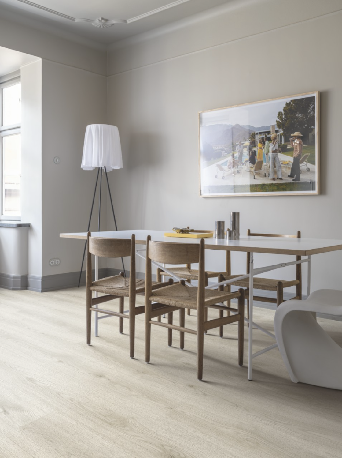do każdego pomieszczenia. Dzięki wyjątkowo mocnemu rdzeniowi i doskonałej warstwie ochronnej podłoga Glomma jest wytrzymała i odporna na plamy i nadmierne zużycie.