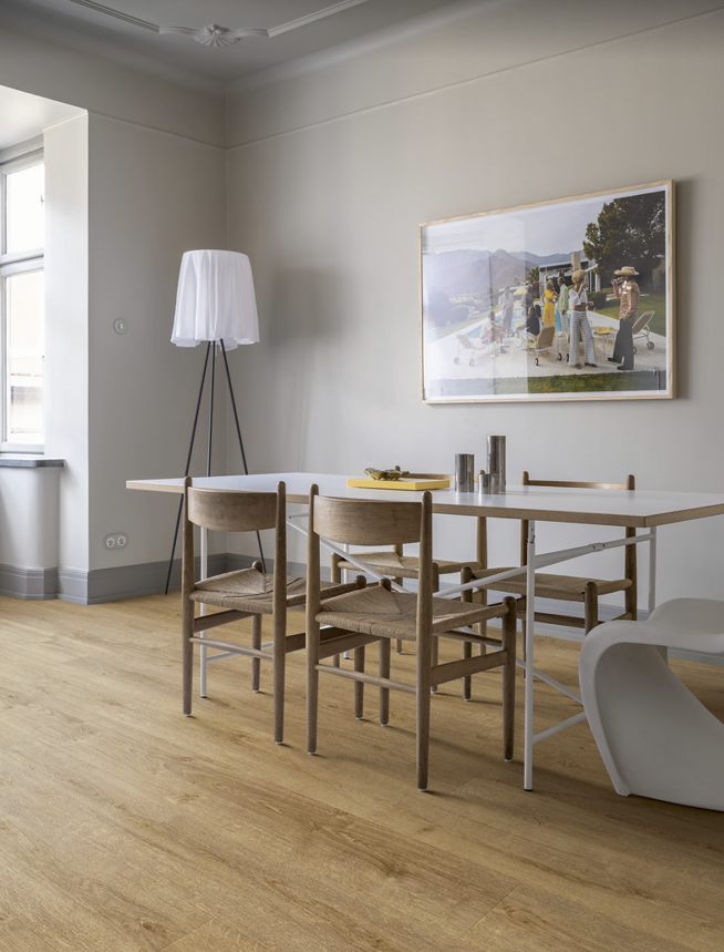 Dzięki wysokiej odporności i wodoodporności, panele Pergo Glomma Pad Pro świetnie sprawdzą się zarówno w domach, jak i w przestrzeniach użytkowych – takich jak biura, sklepy czy apartamenty inwestycyjne.